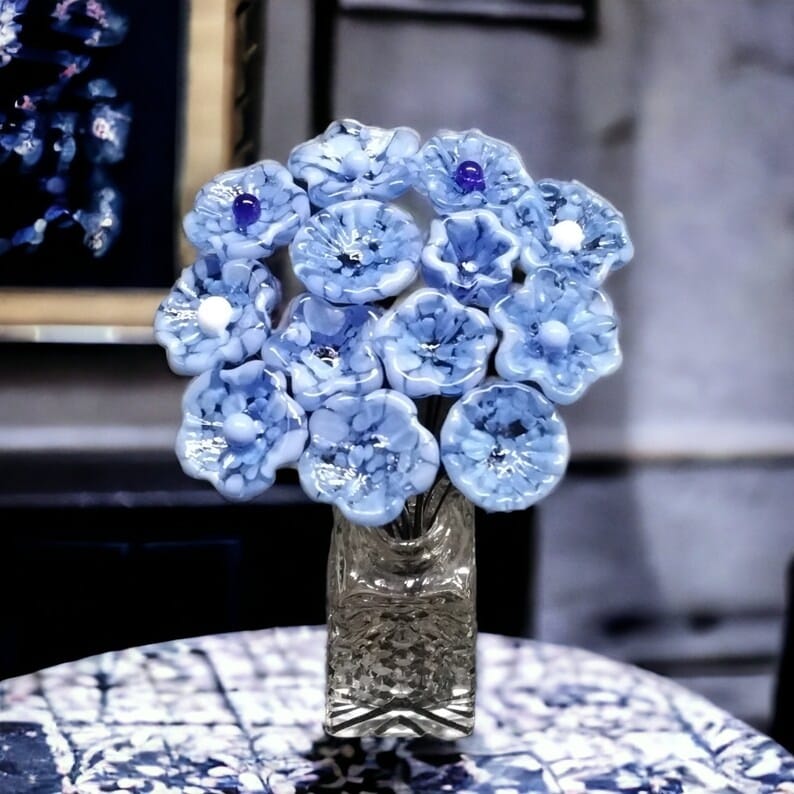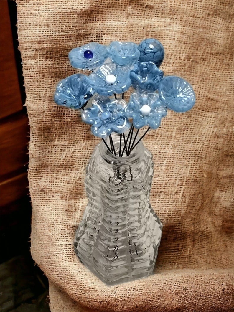 DENIM BLUE glass flower headpins; mini tiny small glass flowers on wire; individually crafted lampwork for mini bouquets or jewelrymaking