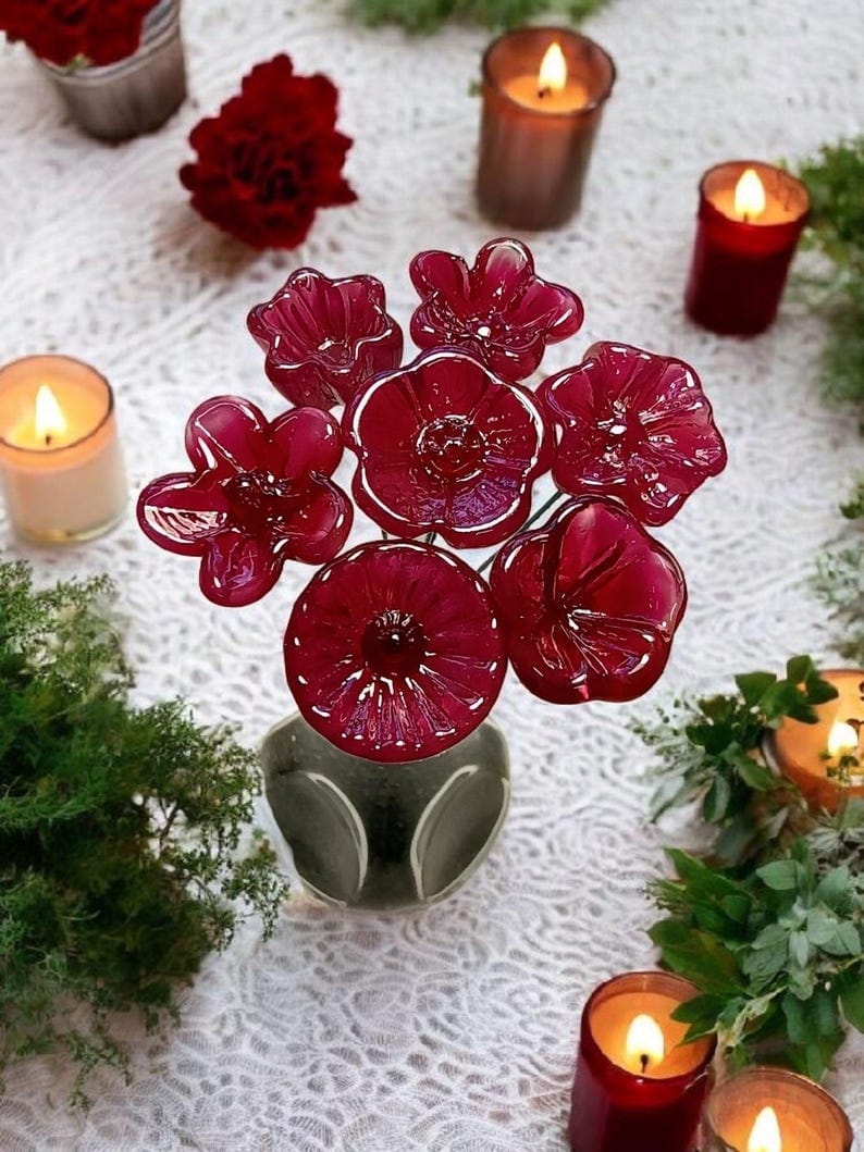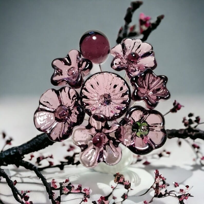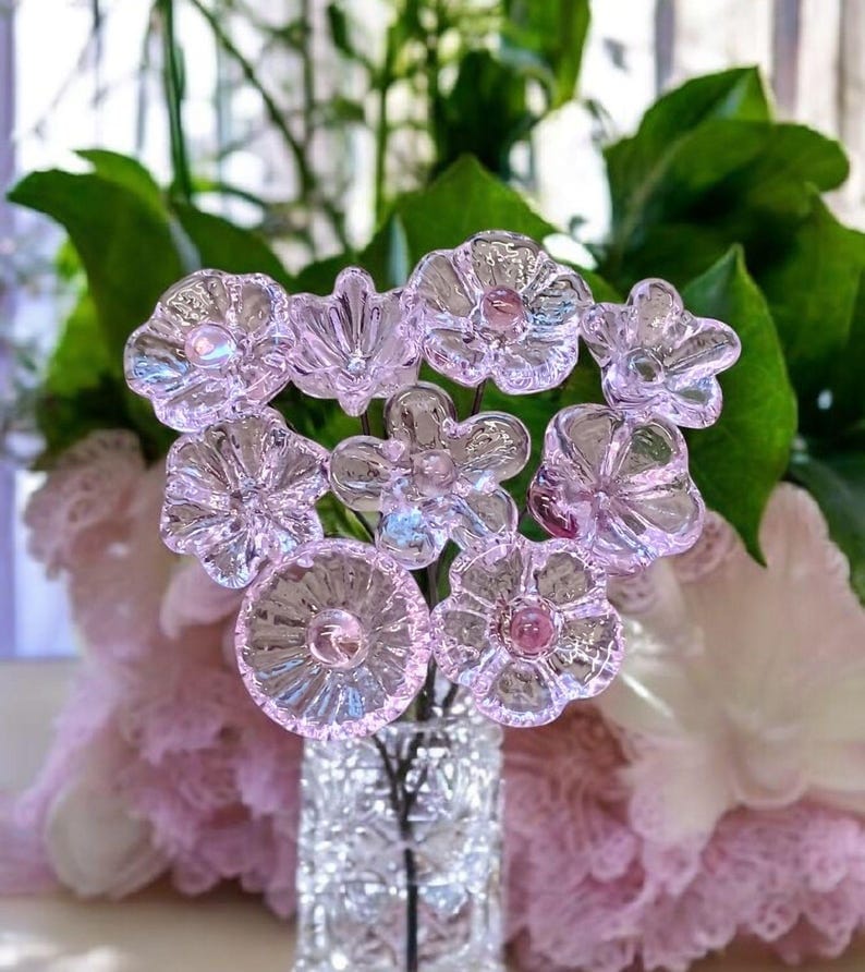 Pink Crystal glass flowers ~ tiny small miniature glass flowers on wire; for small bouquet gifts or jewelry, glass flowers made in my studio