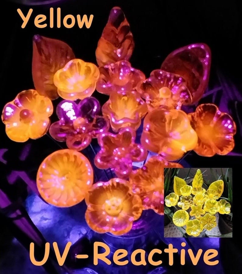 Yellow/Amber UV REACTIVE *yellow/amber glow in uv light* glass flowers mini tiny small glass flowers on wire individually crafted lampwork